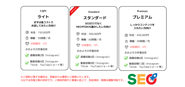 単発のご依頼はもちろん、全体をまとめてサポートしてほしいという方向けに、お得なセットプランもご用意しています。